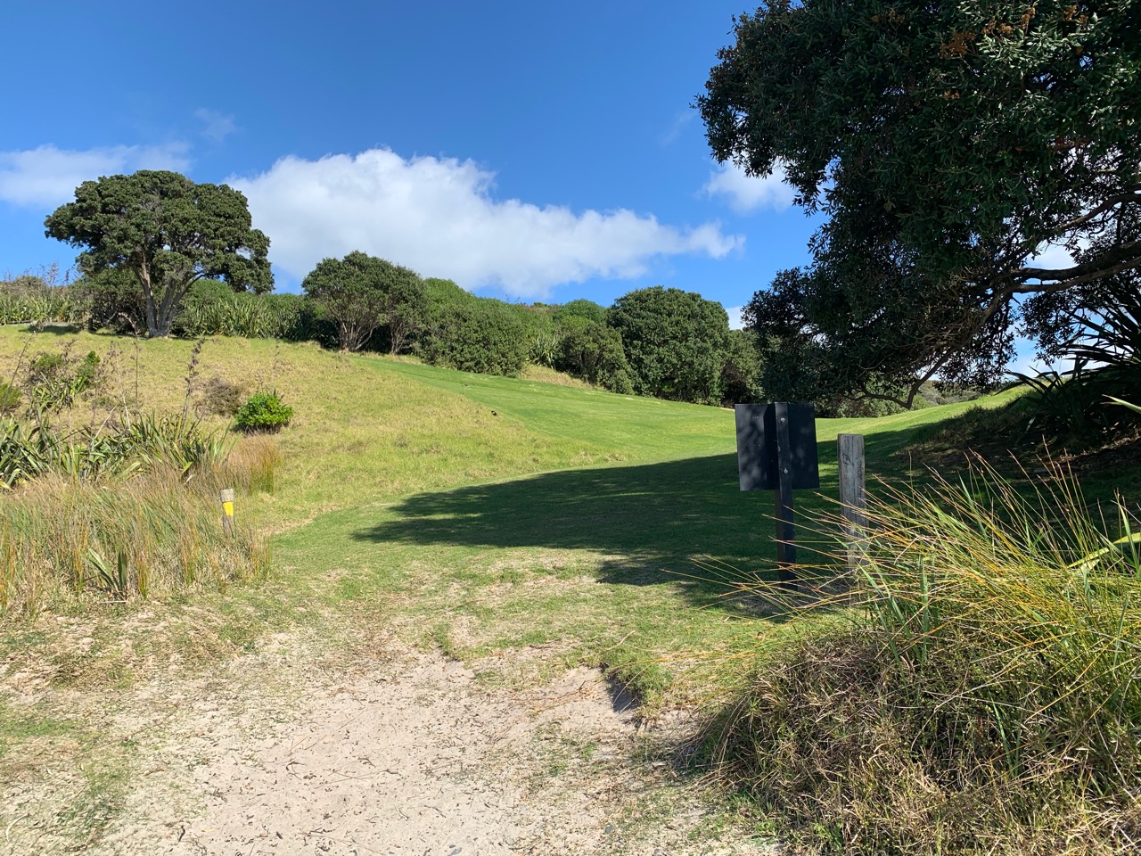 ポールの場所に到着。ここからはまた芝生エリアを歩きます。
