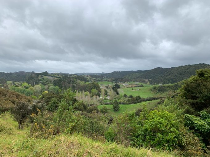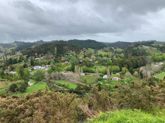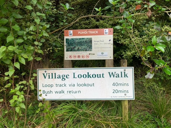 場所は、オークランド中心から北へ約50km、車で1時間ほどのプホイ(Puhoi)村の中心にある、小高い丘を登るコース、プホイ・ルックアウト・トラック(Puhou Lookout Track)です。