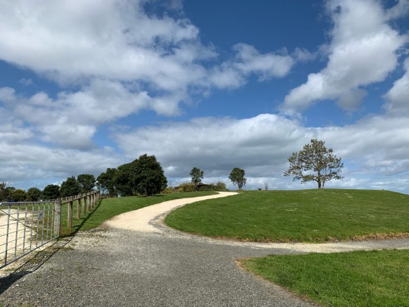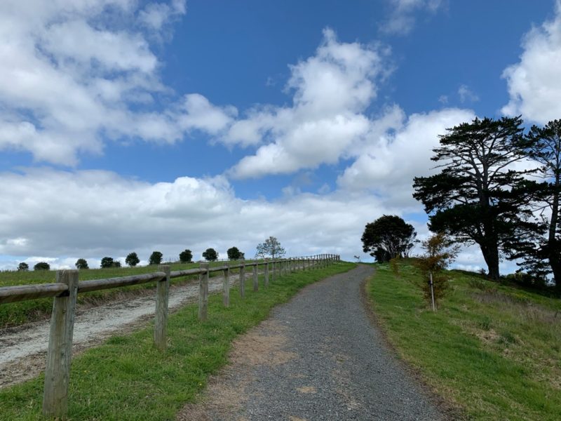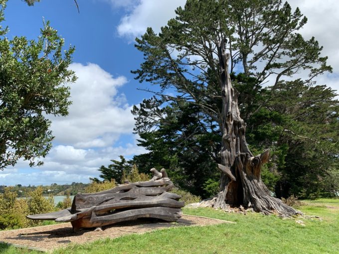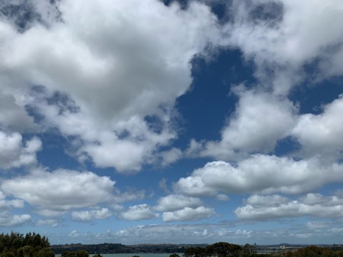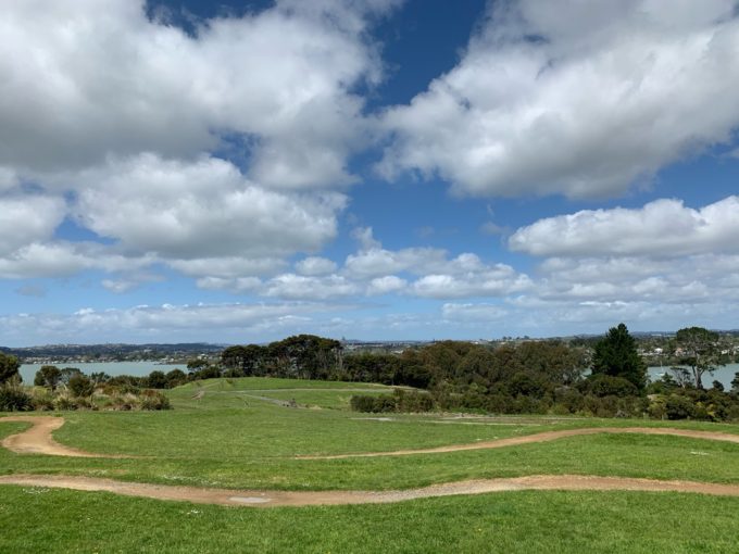 空は晴れ渡り、のんびりとした午後のひとときです。はるか遠方にオークランドシティのシンボル、スカイタワーが見えますね(分かります?)。