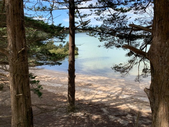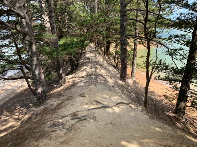 道の両サイドが海岸になっています。夏は海水浴できそうな雰囲気。釣りも出来そう。