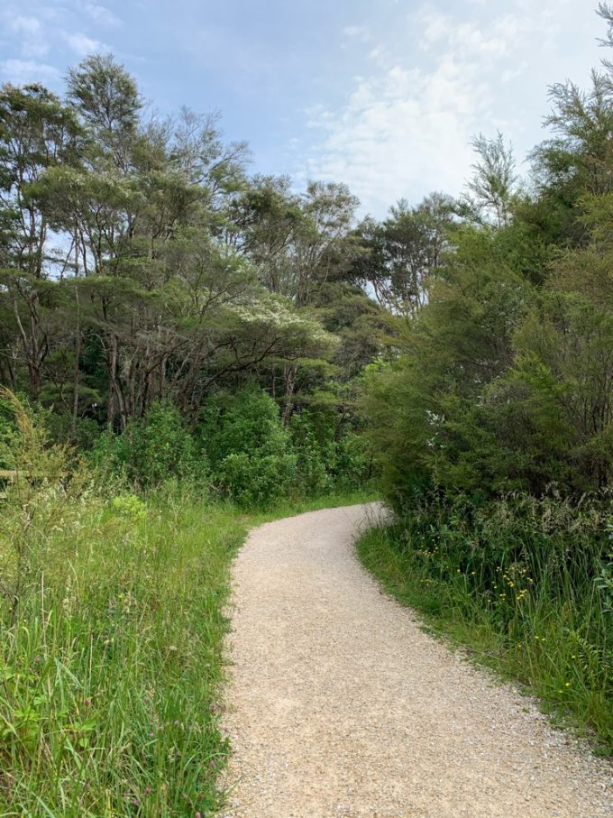 道は至って平坦です。トレッキングコースというよりは遊歩道ですね。スニーカーで歩いても全く問題ありません。