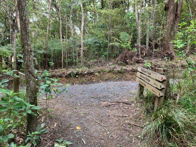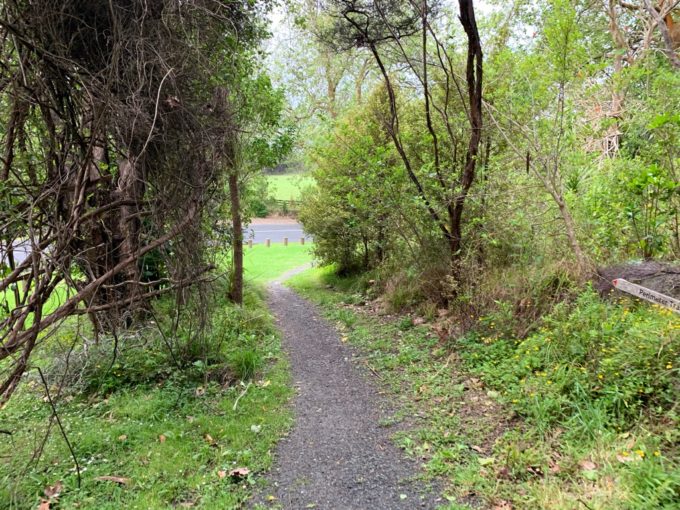 しばらく歩くとY字の分岐点に着きます。左方向に進むと先程の橋に出るようです。ここは右へ。
